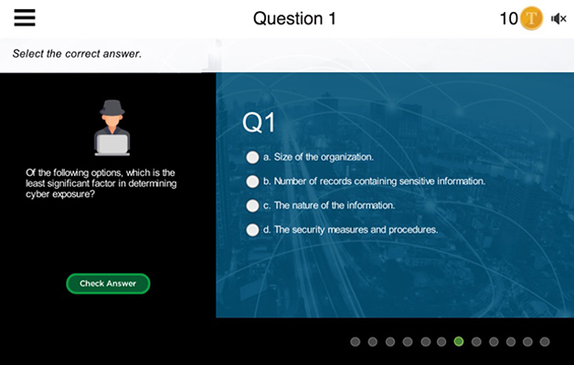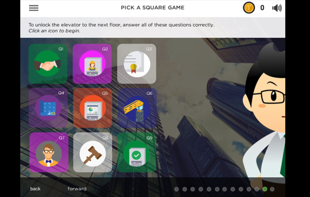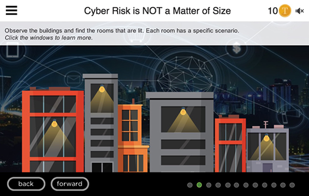 A: Develop highly memorable and fun eLearning that challenges brokers to construct a virtual building, and collect reward tokens to complete the course. Entitled Surety 101 and Cyber 101, the successful completion of the eLearning provides continuing education professional credits.
